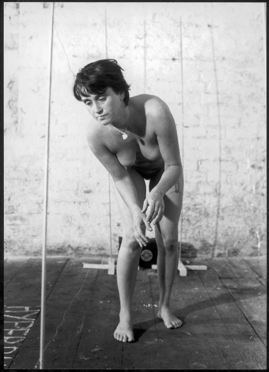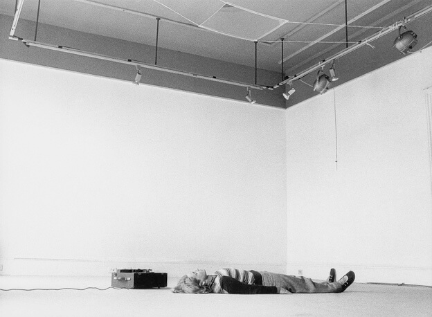 representation. VALIE EXPORT is seen lying on her back on the floor. A soundtrack is