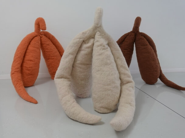Handarbeitstechniken. In ihrer PLEASURE ARMY, textilen Objekten aus Schafwolle in