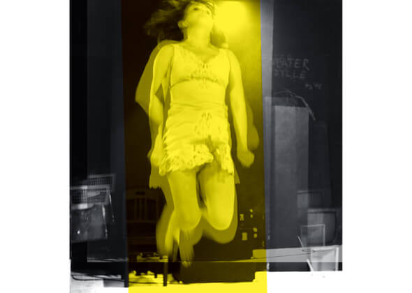 This piece is a conceptual photo collage as part of a series dealing with female anatomy and female body images. The artist combined excerpts from several photos of ladders to create an image of a long ladder. In doing so, she once again alludes to social structures, hierarchies, and positions of power: Where does an individual stand on the social ladder? On the bottom image of the collage, she has written a sentence that almost reads like a love poem, “MY EYES CLIMB UP THE LADDER OF LOVE TO MEET TIME AT YOUR MOUTH.”