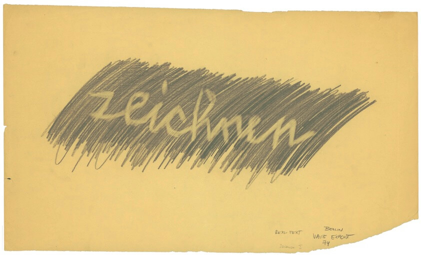VALIE EXPORTs Zeichnungen. In ihnen wird der Prozess, mit Sprache künstlerische Arbeit zu